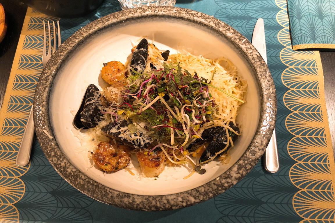 Het maritieme “Zilt & Zout” karakter verrukte ons ook met de twee verschillende hoofdgerechten, zoals de voorgerechten geserveerd in trendy “Earth” keramische gerechten: de pasta “Zeevruchten” gemaakt van fijne spaghettini was precies goed met mosselen, scampi’s en sint-jakobsschelpen in porties, pasta en “topping” mengeling en smaak. En voor de hongerige niet geassocieerd met te veel mossel-opening werk. De eveneens bevredigende “gevulde vissoep met halve kreeft” kwam met een licht tomatenbrouwsel, waarin scampi’s en kleine filets van vier verschillende vissen een “zilte” rol speelden naast de halve kreeft als hoofdrolspeler.