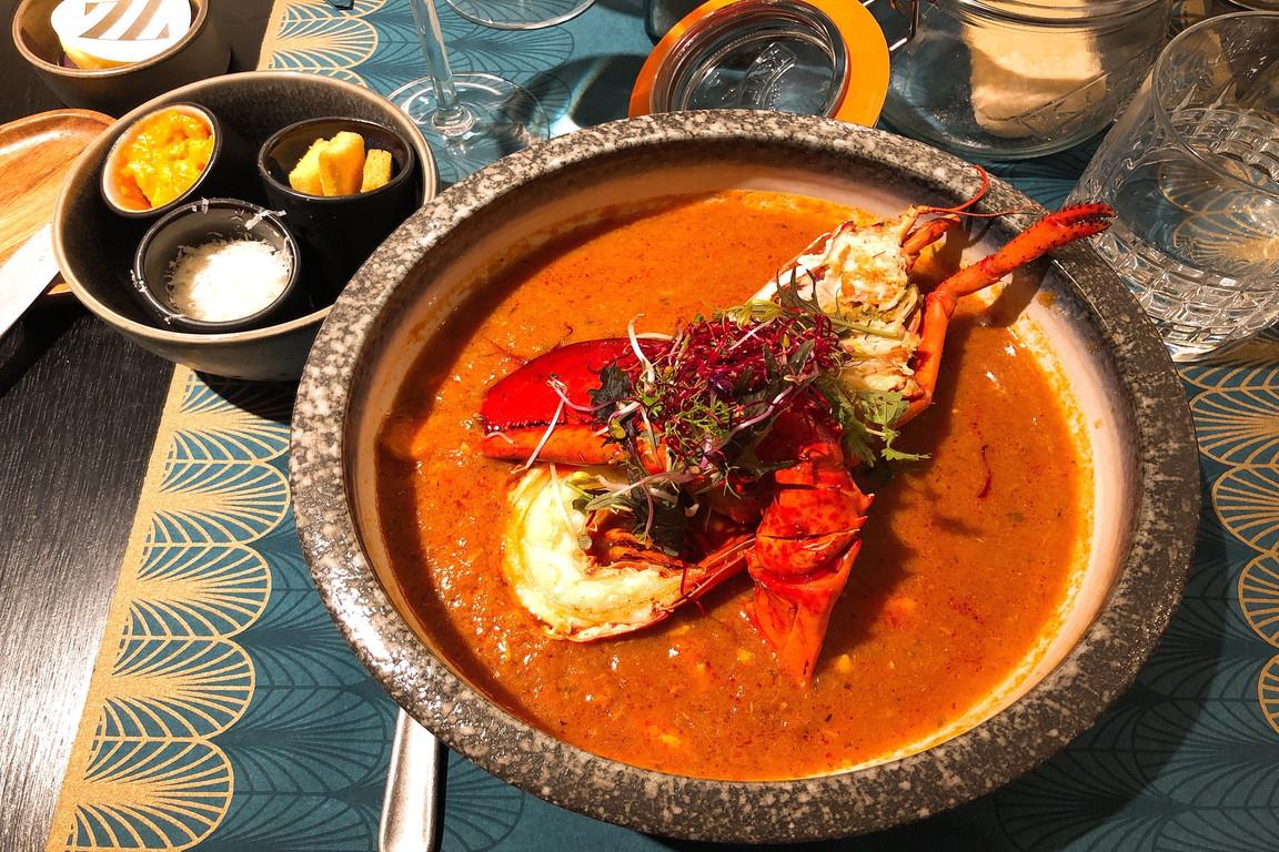 Auch bei den beiden unterschiedlichen Hauptgerichten, wie die Vorspeisen in trendigen „Earth“-Keramikgeschirr gereicht, erfreute uns der maritime „Zilt & Zout“-Charakter: Die Pasta „Zeevruchten“ aus feinen Spaghettini war mit Miesmuscheln, Scampi und Jakobsmuscheln in Portionierung, Nudel- und „Topping“-Mischung und Geschmack genau richtig inszeniert. Und für Hungrige nicht mit zu viel Muschel-Öffnungsarbeit verbunden. Die auch sättigende „gefüllte Fischsuppe mit halben Hummer“ kam mit einem leicht tomatigen Sud daher, in dem neben dem halben Hummer als Hauptdarsteller Scampis und kleine Filets vier unterschiedlicher Fische ein „ziltige“ Rolle spielten.